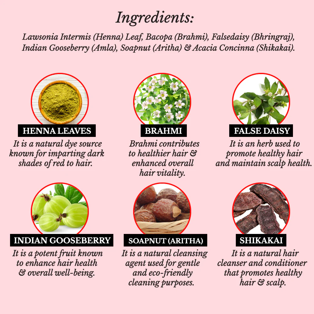 - Chemical-Free & Freshness Guaranteed: No Pesticides, No Heavy Metals, No Ammonia, No PPD, No Harmful Compounds, ensuring a clean and natural haircare experience. The product comes in beautiful Double Sealed Tin Boxes to preserve freshness and prevent lumping.